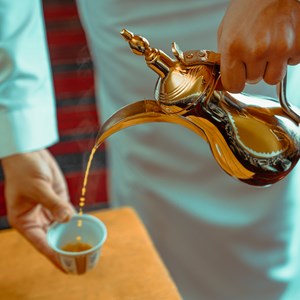 Cafés normally offer a variety of fresh juices to go with a meal, along with coffee, 'gahwa', spiced with cardamom and cloves.